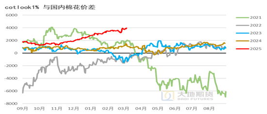 另外,国内的新棉一般从3月底~4月初开始种植,若国内棉价上涨过快、过高,也会刺激2026/27年度的新疆棉花种植意向,降低新作减供应的空间。