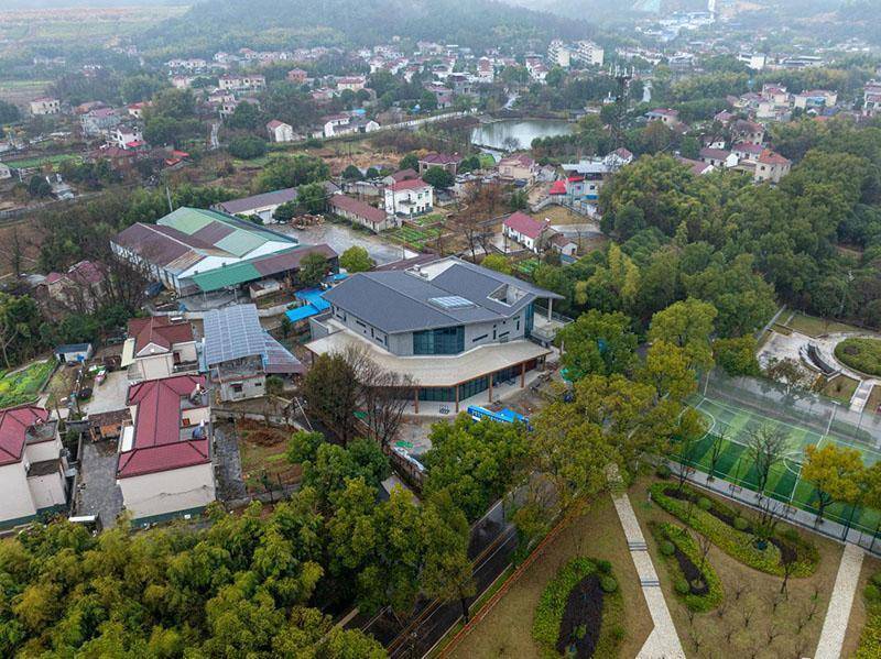 配资网站 俯瞰施工项目,“共富中心”已完工。张博 摄